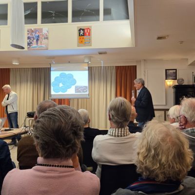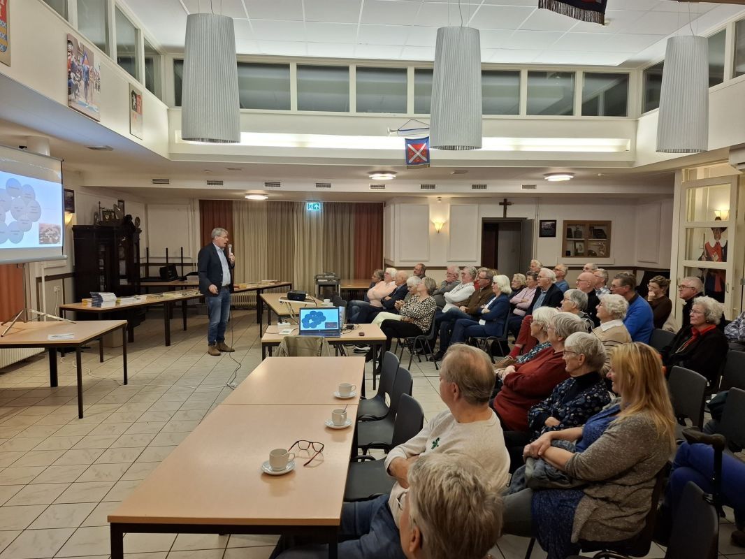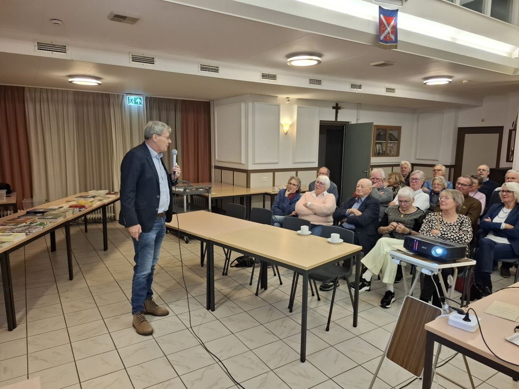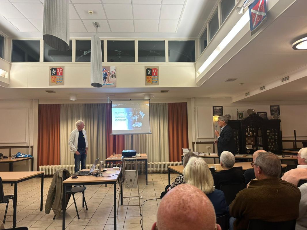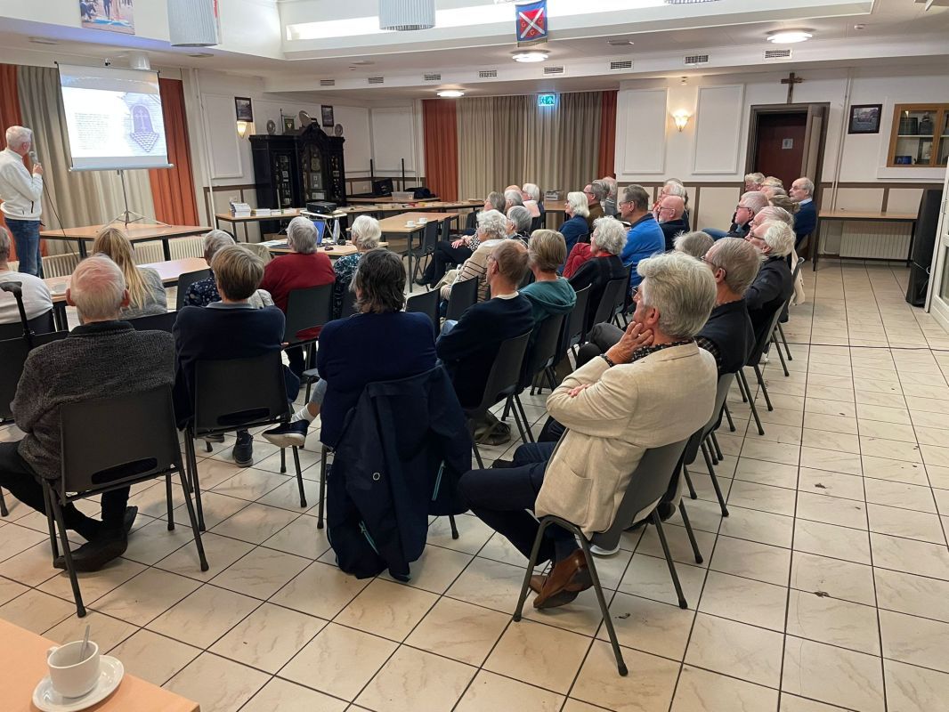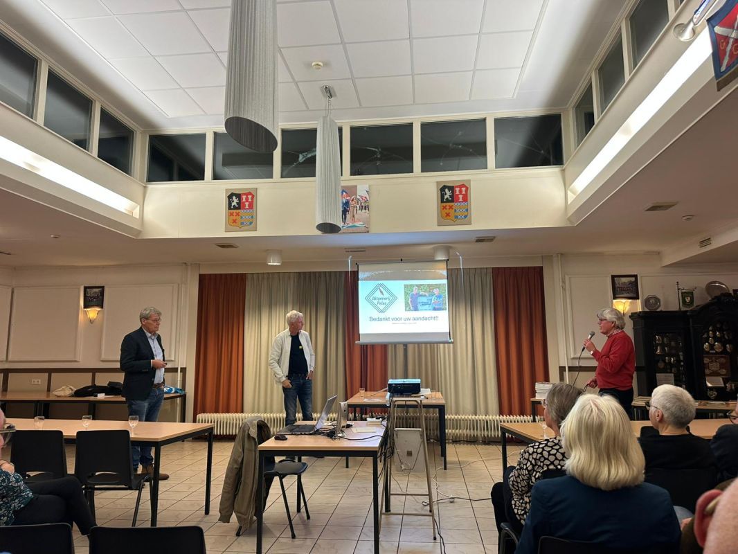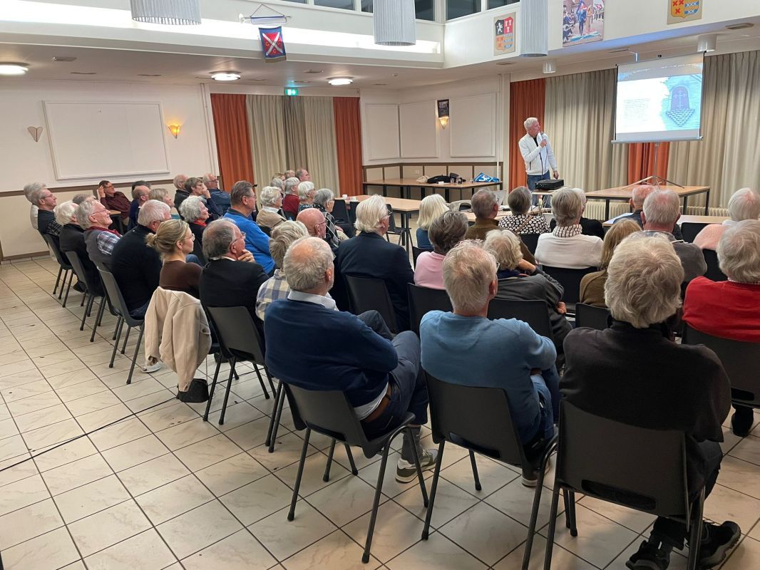 De presentatie werd ondersteund door oude foto’s en een bijzonder filmpje waarin de heer Ten Broeke, destijds directeur van de Christelijke MAVO, terugblikte op de sloop van zijn school aan de Prins Bernhardlaan. Voor velen in de zaal een herkenbaar moment.