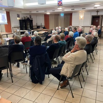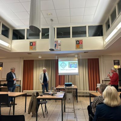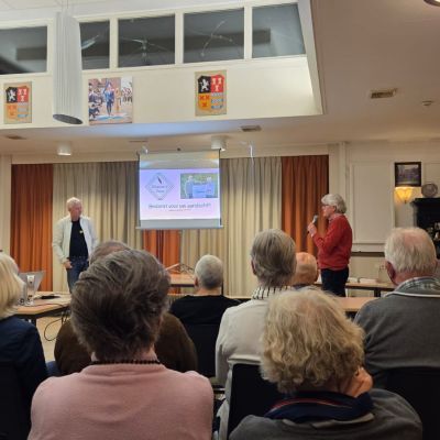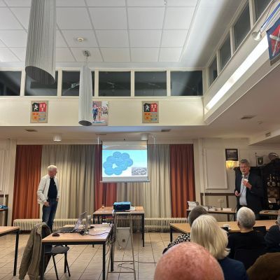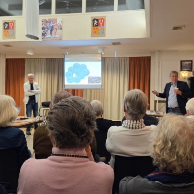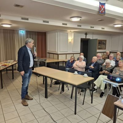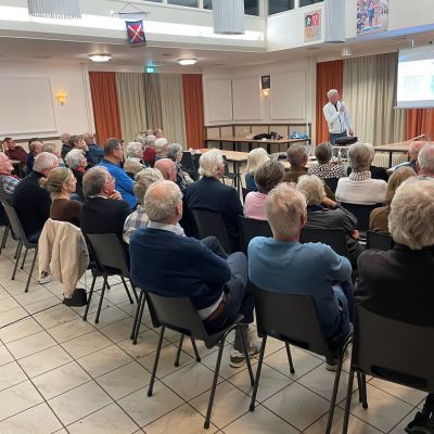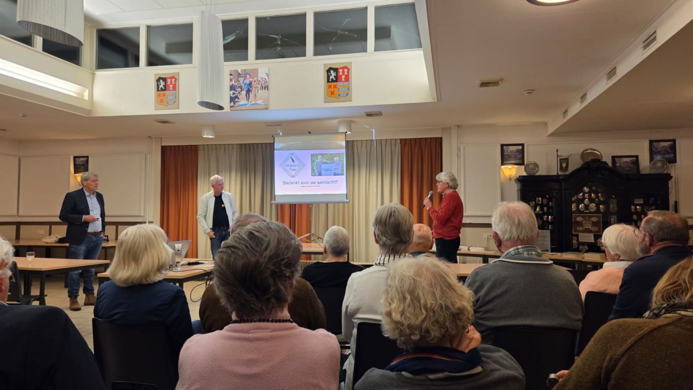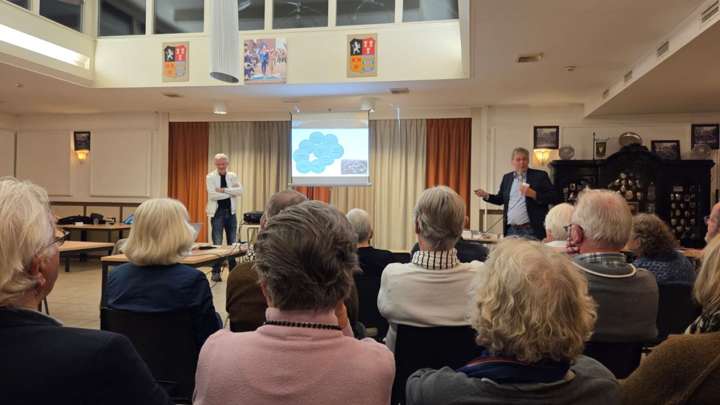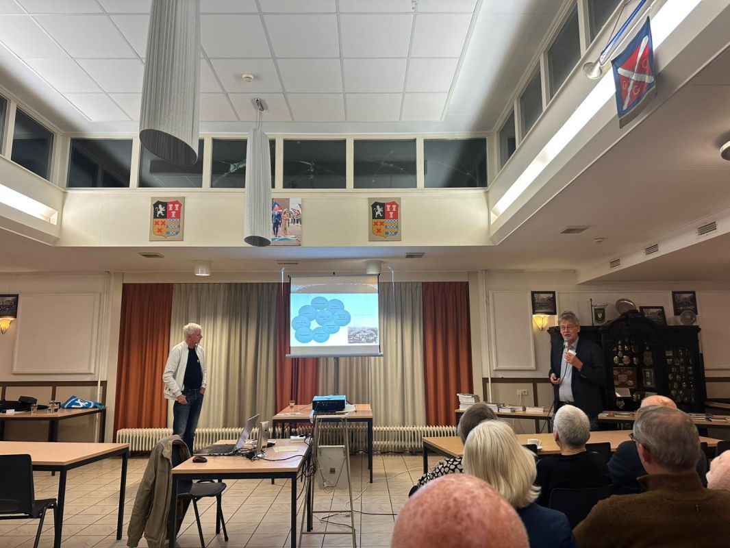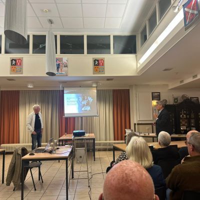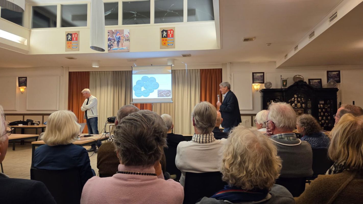 De presentatie werd ondersteund door oude foto’s en een bijzonder filmpje waarin de heer Ten Broeke, destijds directeur van de Christelijke MAVO, terugblikte op de sloop van zijn school aan de Prins Bernhardlaan. Voor velen in de zaal een herkenbaar moment.
